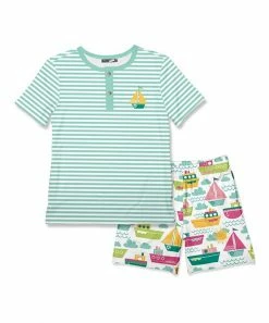 Budget ๐ Millie & Maxx Mint Stripe Henley & White Boat Brigade Shorts – Toddler For Kids โ๏ธ
