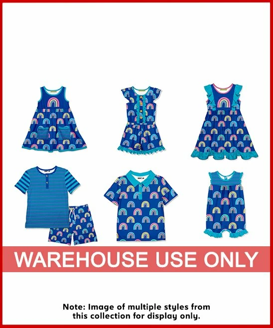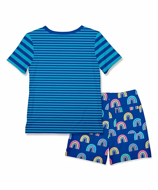 - Includes blue stripe henley and blue multicolored rainbow shorts (two pieces total)