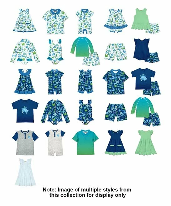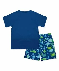 - Includes cobalt turtle crewneck tee and cobalt watercolor sea pocket shorts (two pieces total)