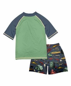 Give your little one ready for a day in this sun with rashguard set decorated in fishing gear-inspired print.