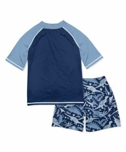 - Includes one dusty navy dino den short-sleeve rashguard top and one pair of dusty navy dino den rashguard shorts (two pieces total)