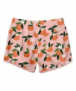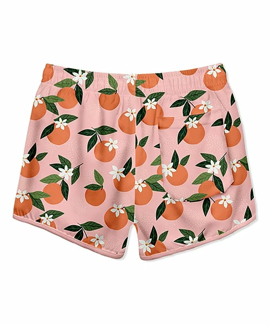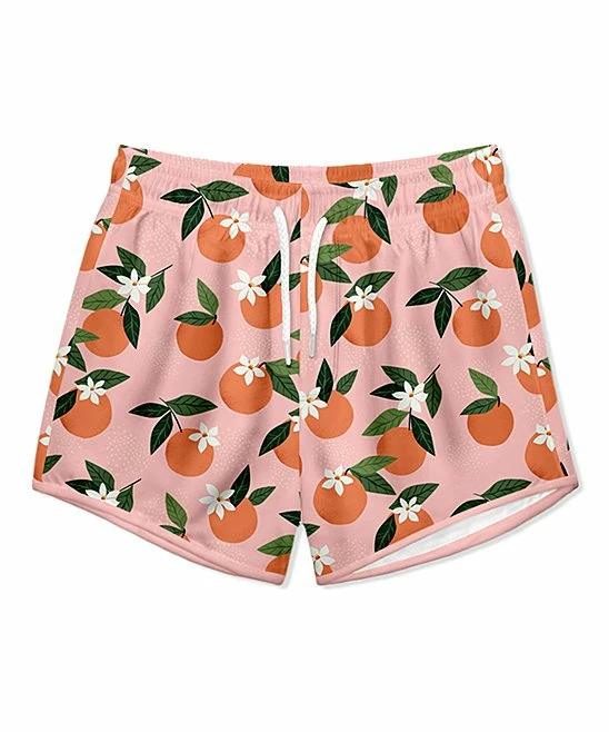 Little ones splash around in style wearing this pair of swim trunks featuring peach patterns. A rating of UPF 50+ helps protect from sun exposure.
