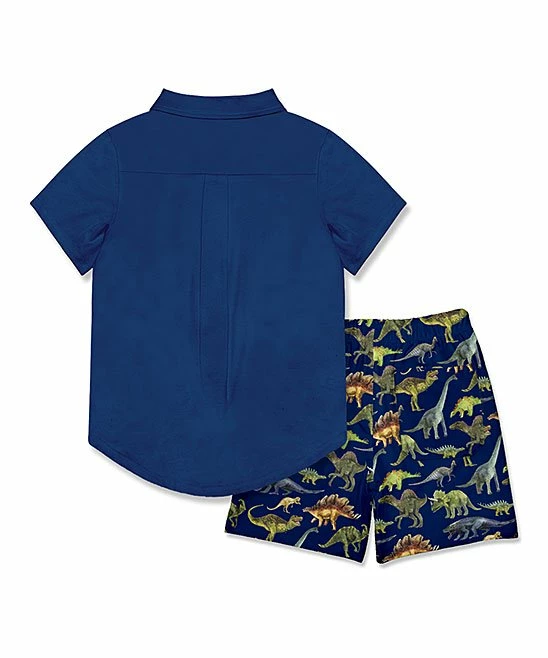 - Includes: navy polo shirt and dinosaur shorts (2 pieces total)